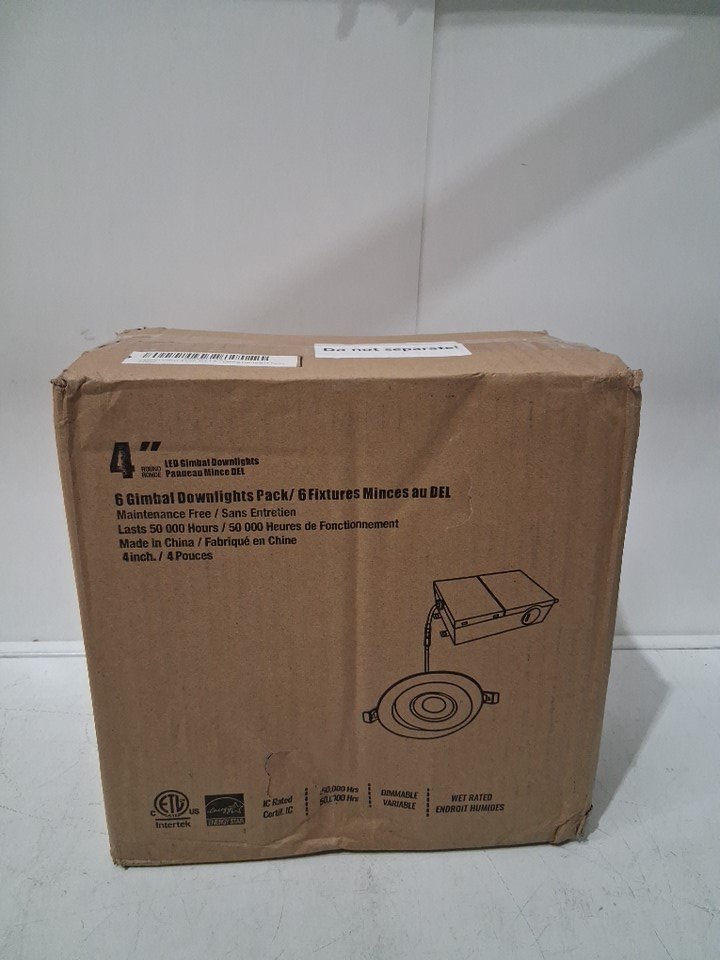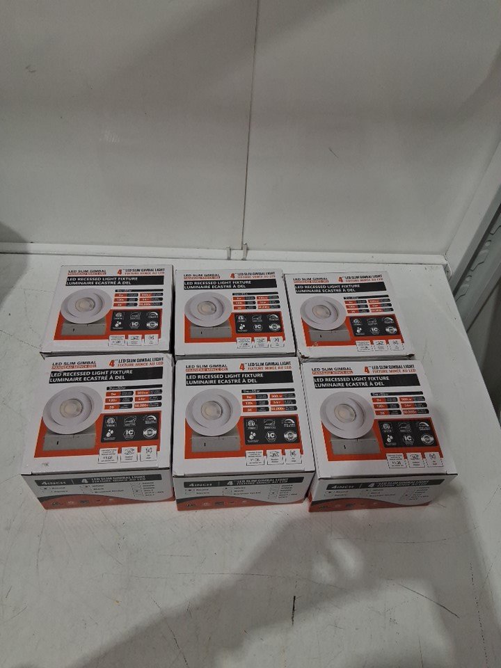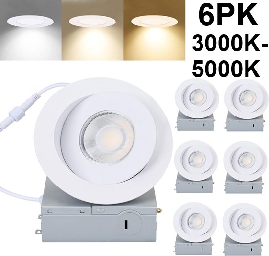 6pk csacct Ultra Thin Gimbal LED Dimmable Light fixture with Junction Box - 4'', 3CCT, 3000K-5000K, 900LM - white