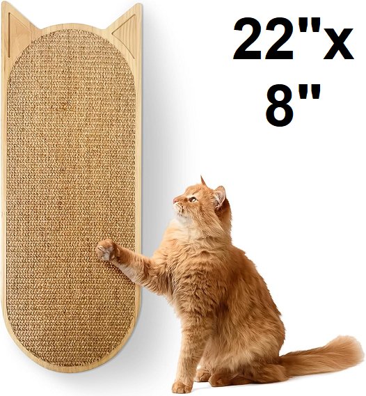 tilkat meow vertical wall mounted cat scratch bord - 22" x 8" - brown / wood