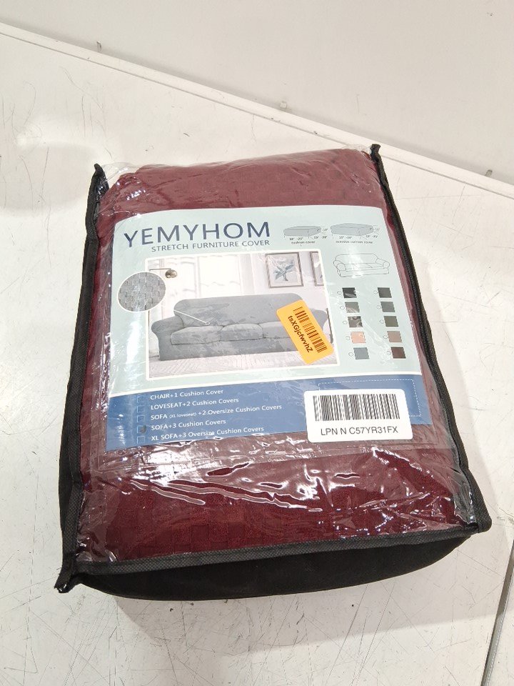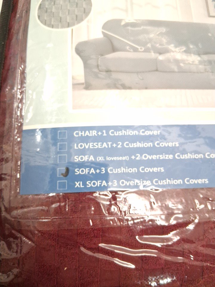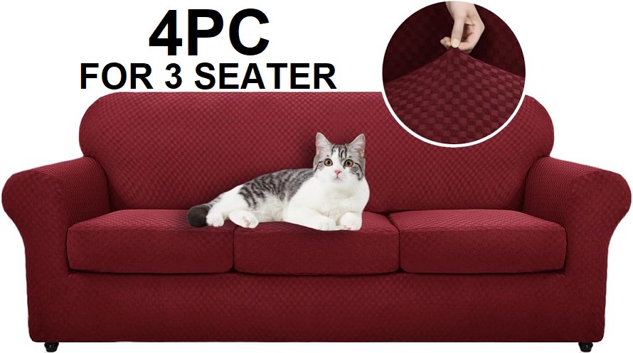 4pc YEMYHOM stretchy Latest Checkered sofa Couch cushion Covers - for 3 seater sofas - wine red