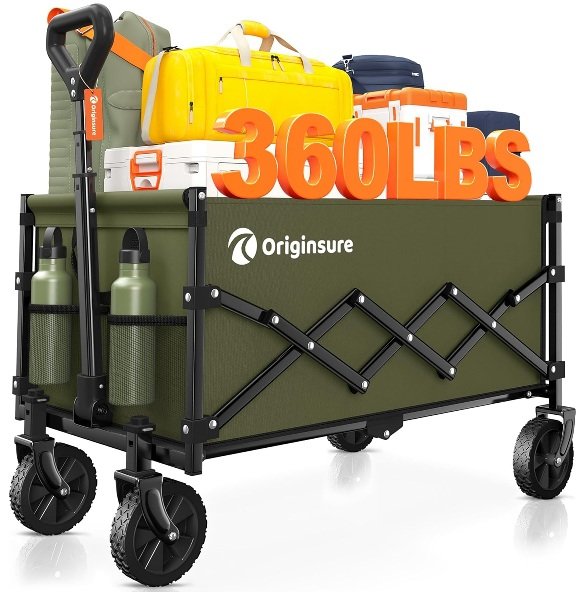OriginSure Heavy-Duty Collapsible Utility Wagon Cart All-Terrain Wheels - 360LBS Capacity - green
