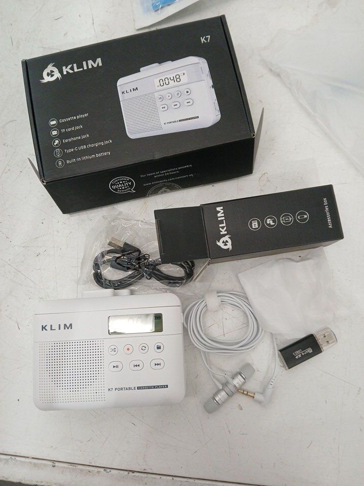 KLIM K7 Cassette Tape Player - Cassette to MP3 Converter - Built-in Microphone & Speaker, Rechargeable Battery, 16GB SD Card - White