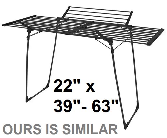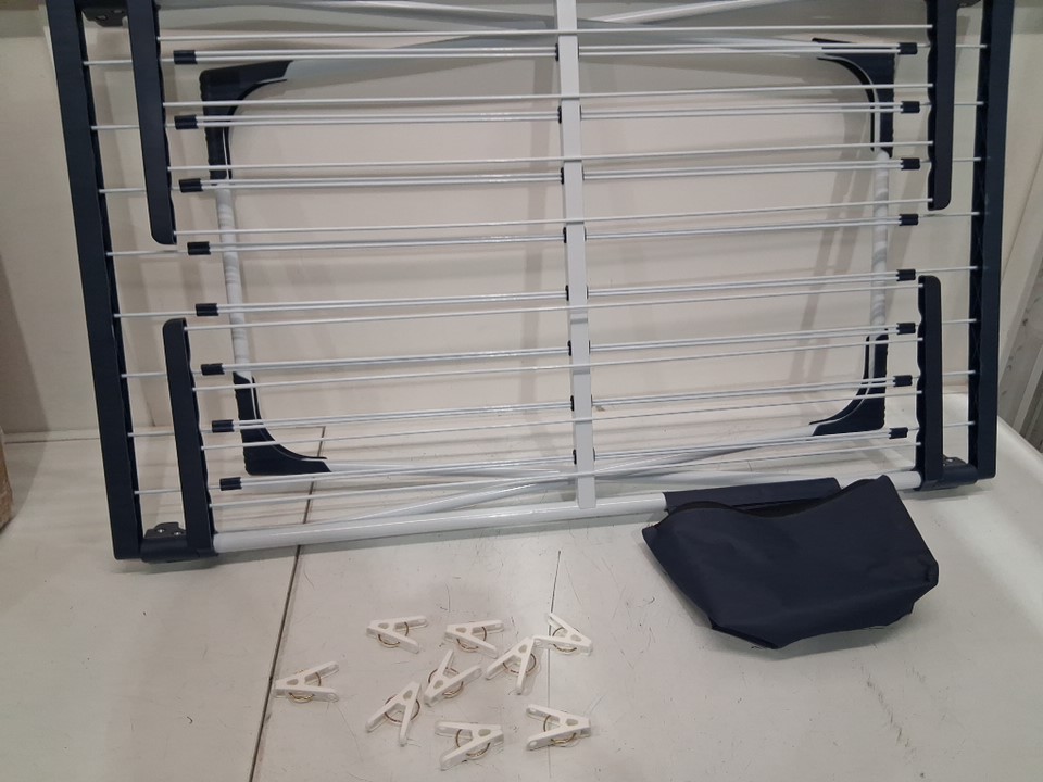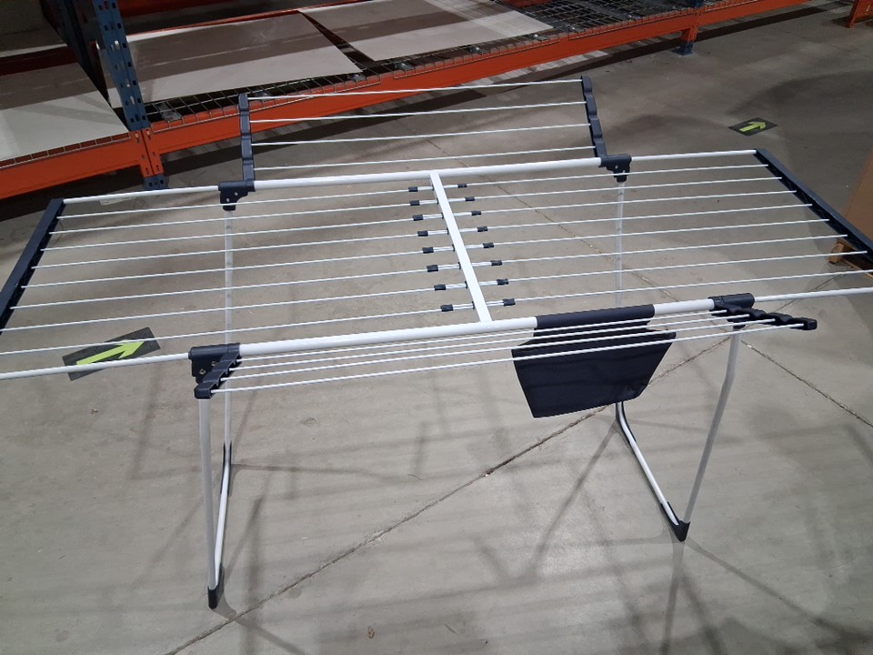 Extendable air clothes drying rack with wings - 22" x 39" to 63" - White/blue