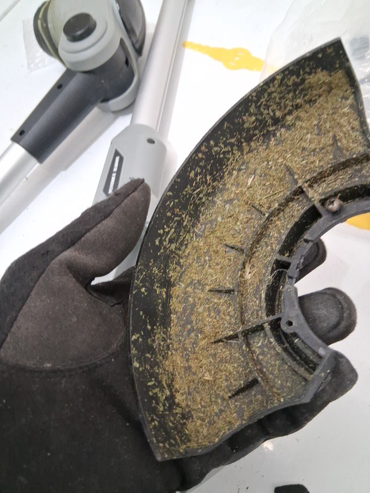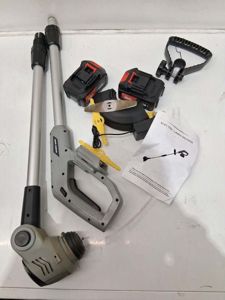missing some bolts needed for complete assembly. missing a few blades also. Tested for power - signs of use due to missing blades, scuffs and grass.