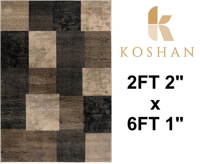 Koshani Vegas Collection 1166 Area Rug - 2FT 2" x 6FT 1" - Brown (Model: 1166 Brown)