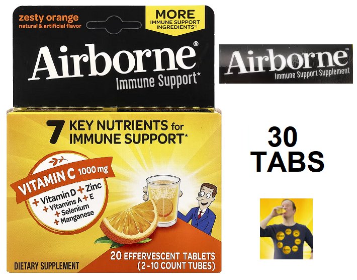 (30 tablets) airborne immune support effervescent tablets - zesty orange