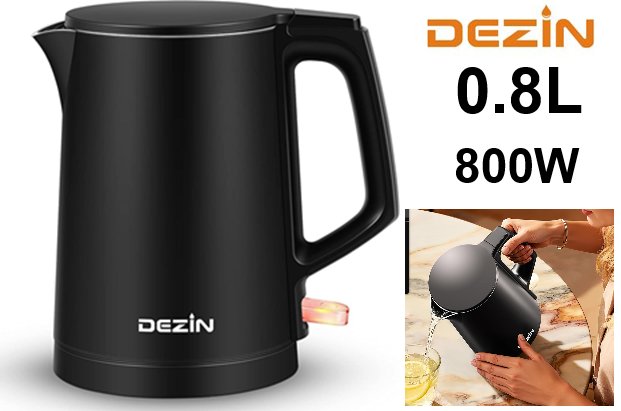 DEZIN PORTABLE ELECTRIC DOUBLE WALL CONSTRUCTION KETTLE - 0.8L, 800W - black