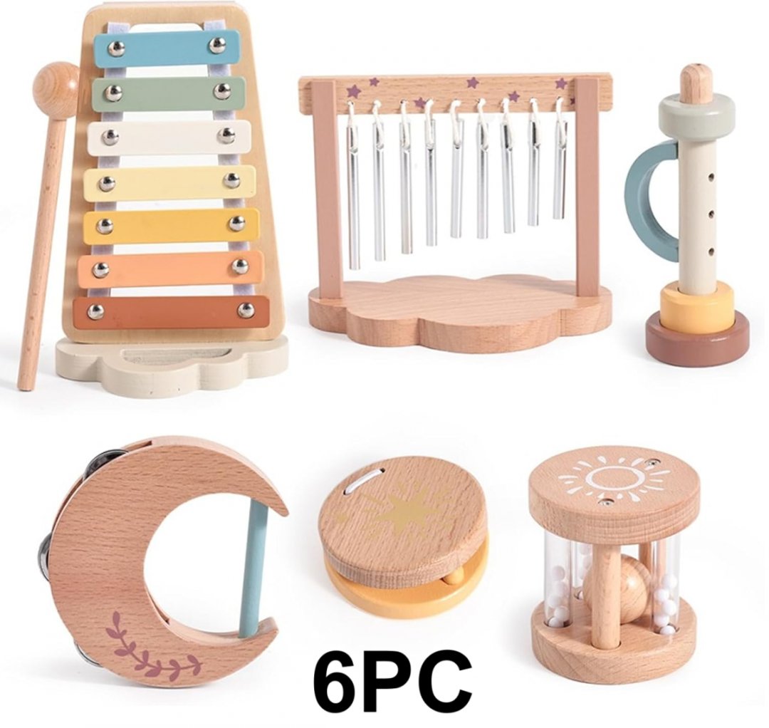 6PC Smartwo Musical Instruments Toy play set - wooden