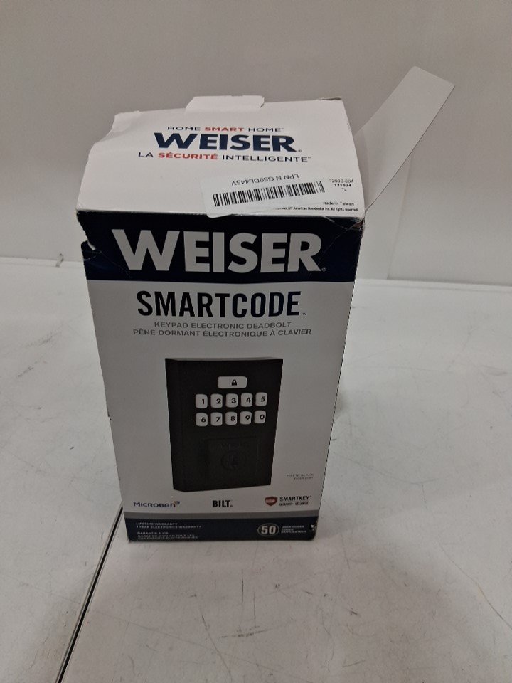 WEISER SmartCode Traditional Keypad Electronic Deadbolt Lock with 50 user codes - Matte Black (model: 9GED92600-002)