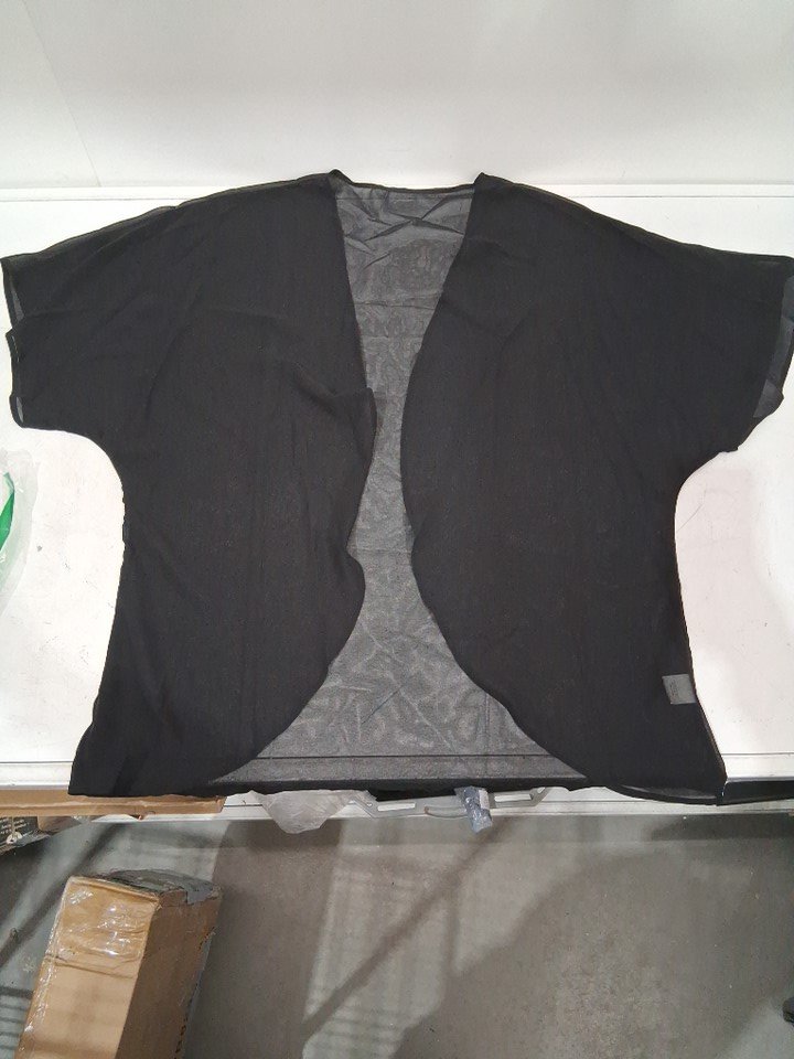 WOMENS SHEER SHORT SLEEVE CURVED HEM CARDIGAN - EXTRA LARGE - BLACK