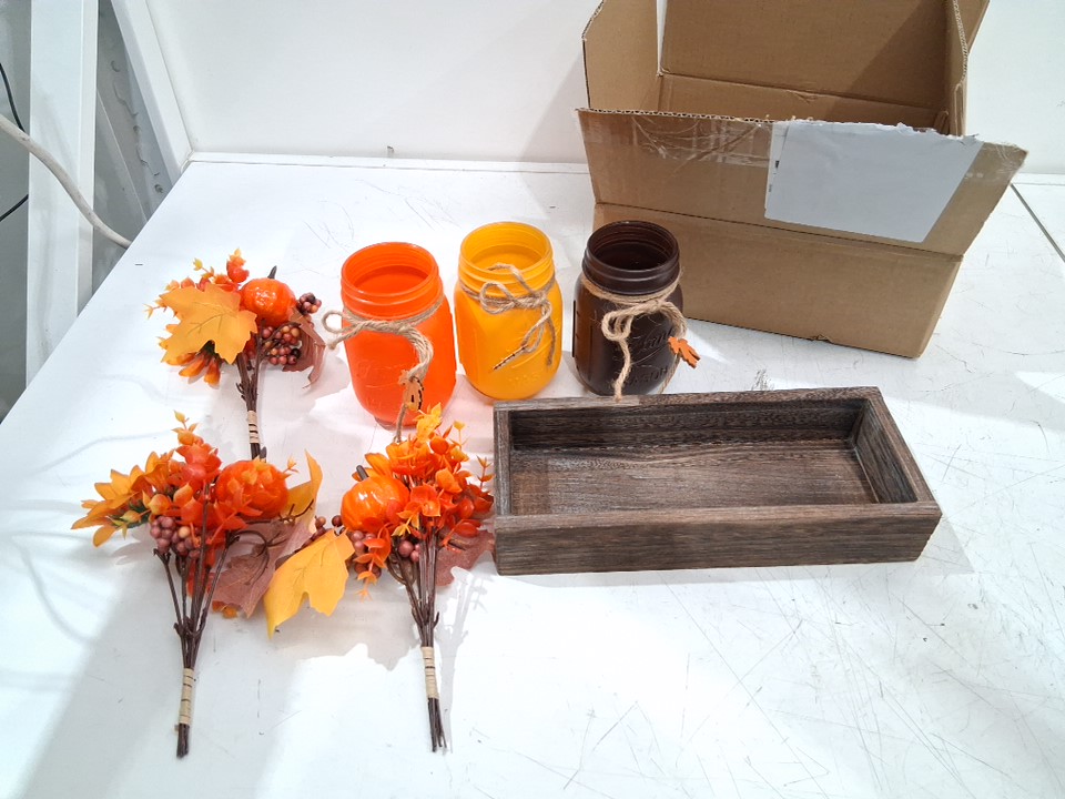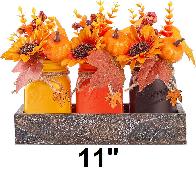 KIVIVO fall autumn thanksgiving mason jar tray home decor - 11" - orange/yellow/brown