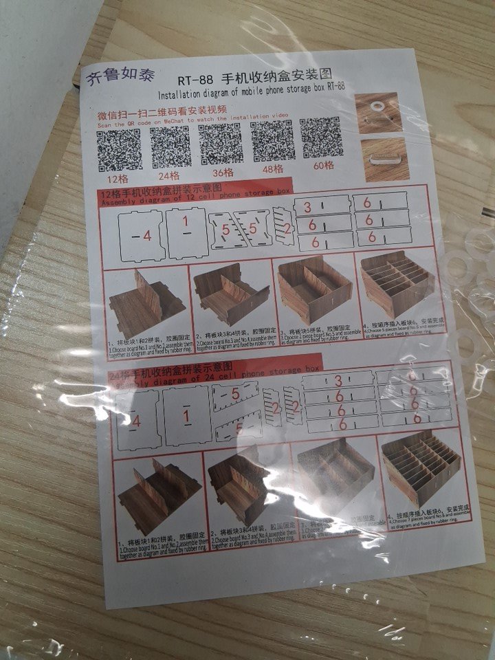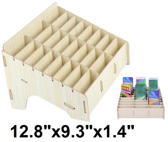 wooden box Multiple Cells Phone Holder slots - 12.8"x9.3"X1.4" - light wood
