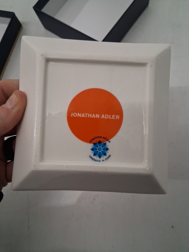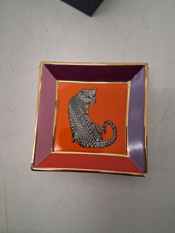jonathan adler porcelain safari square tray - 4.5" x 4.5" - orange/purple cheetah