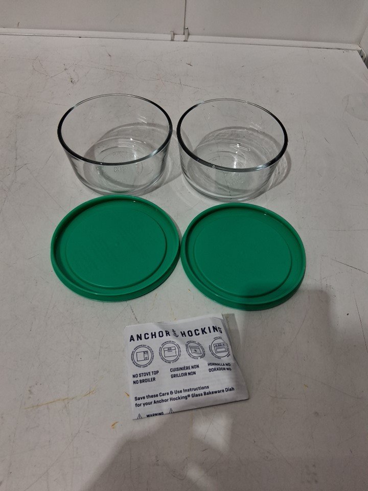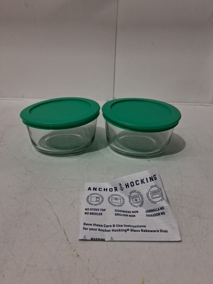 4PC ANCHOR HOCKING GLASS FOOD STORAGE CONTAINERS WITH SNUGFIT LIDS - 16OZ - CLEAR/GREEN (model: ‎14568ECOM)