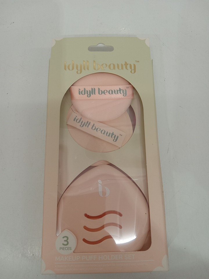 3PC Idyll Beauty Makeup Puff Holder Set With two puffs - pink