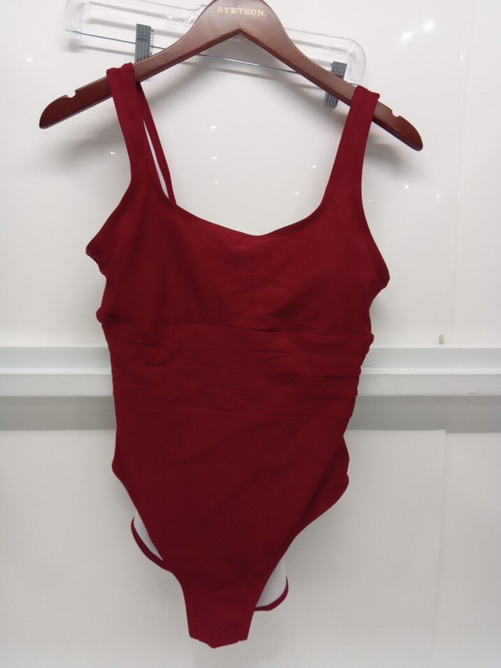 women's RELLECIGA Ruched Tummy Control Bathing Suit - medium - red