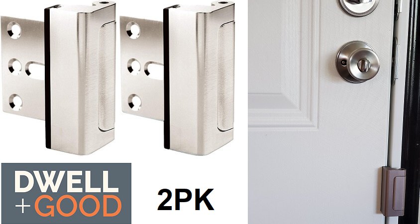 2PK DWELL + GOOD HIGH SECURITY DOOR REINFORCEMNT LOCK - RESISTS UP TO 800LBS OF FORCE - SATIN NICKLE