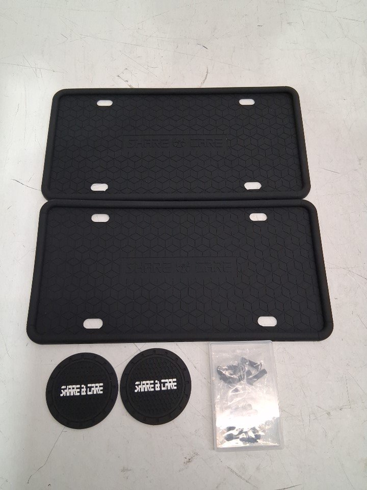 4pc qiqamole share & care silicone license plate frame covers and 2" cup holder coasters - 12.3" x 6.3" - black