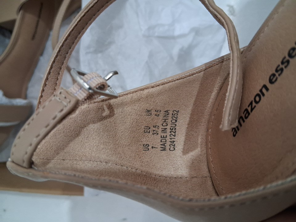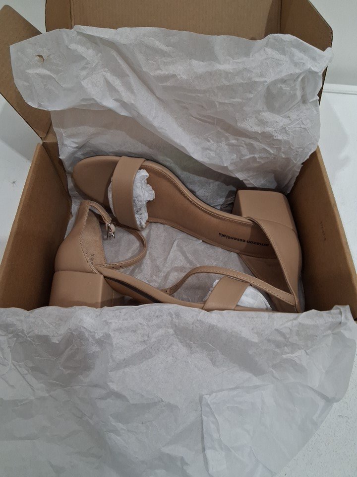 WOMEN'S AMAZON ESSENTIALS TWO STRAP HEELED NOLA faux leather SANDALS - SIZE 7 - BEIGE