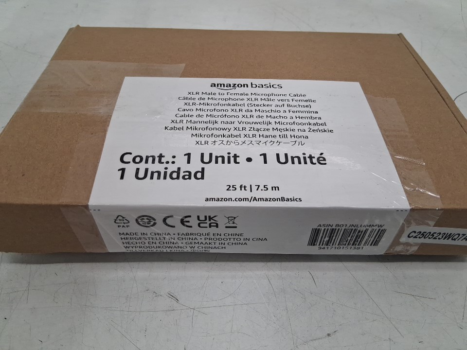 AMAZON BASICS MALE TO FEMALE XLR MICROPHONE CABLE - 25FT - BLACK