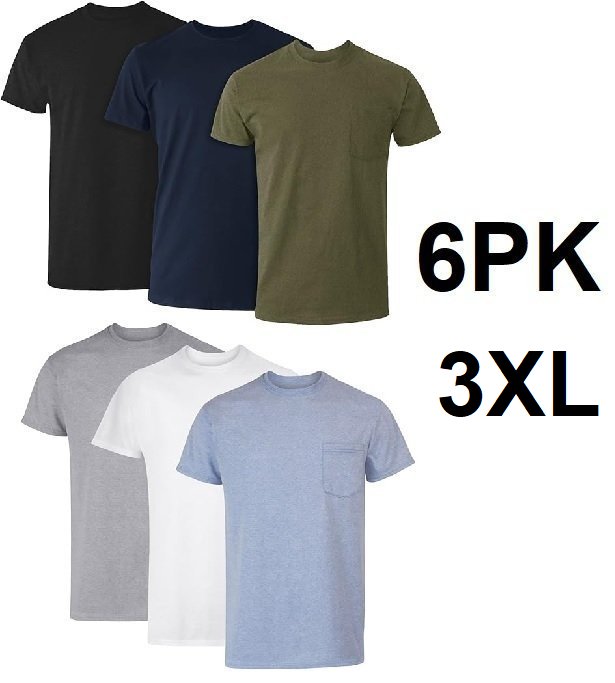 6PK MEN'S HANES TAGLESS POCKET T-SHIRTS -3XL- ASSORTED COLORS