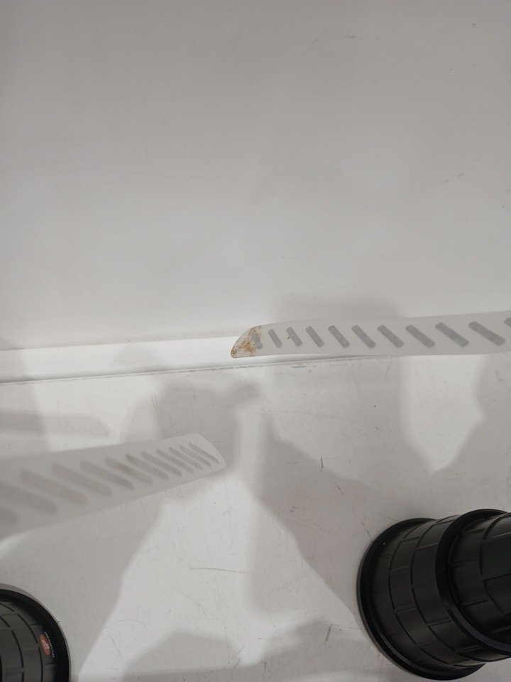 One of the fans has some residue on the end of the blade. Tested for power.