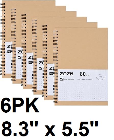 6pk zczn spiral bond dotted notebooks - 8.3" x 5.5" - 120 pages - beige/white
