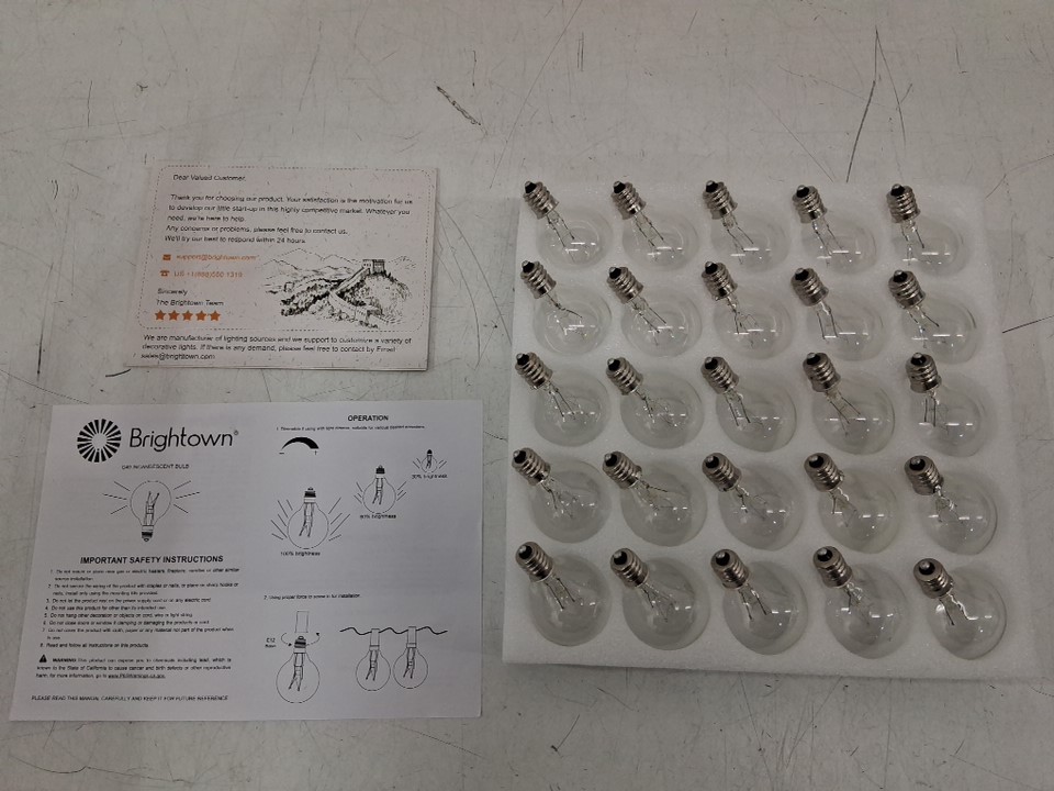25PK BRIGHTOWN G40 REPLACEMENT CLEAR GLOBE LIGHT BULBS FOR C7 AND E12 SOCKETS - INDOOR/OUTDOOR USE - 120V 5W