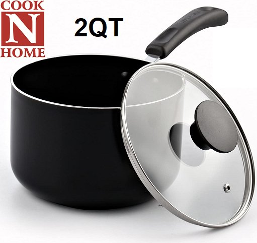 COOK N HOME NONSTICK SAUCE PAN W/ LID, 2QT, BLACK (MODEL: 02582)