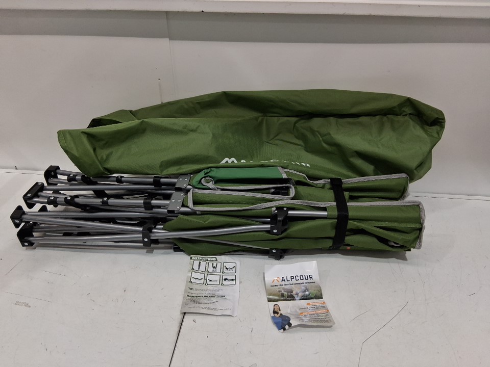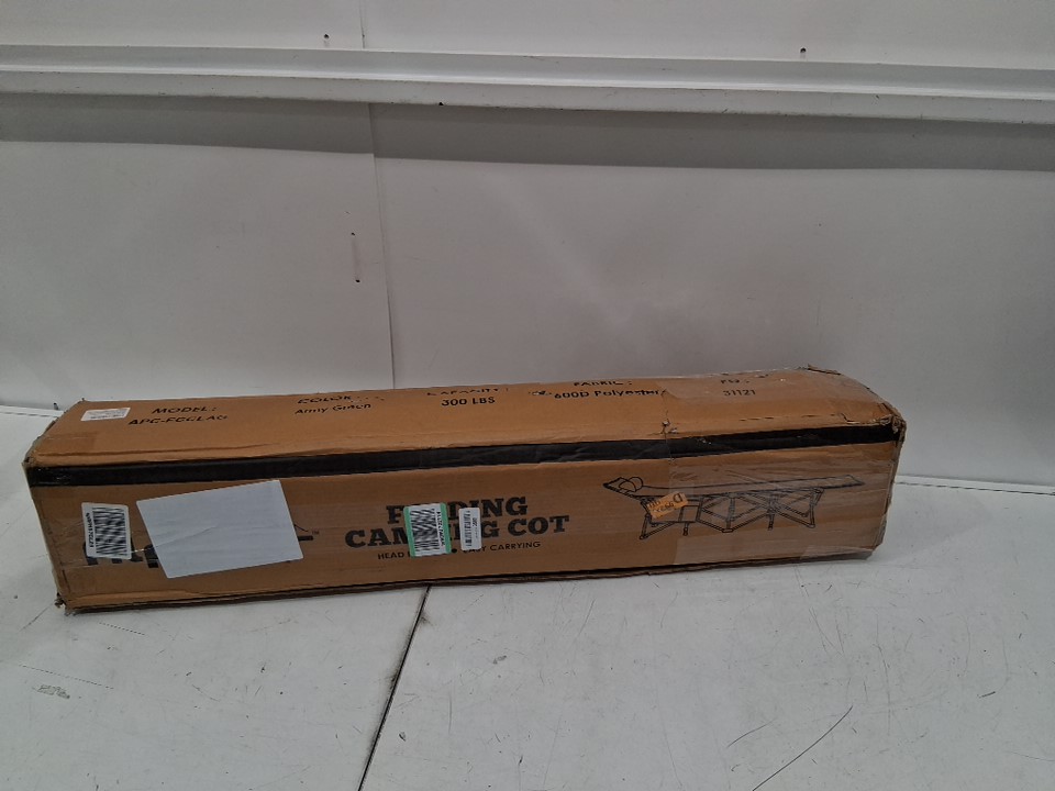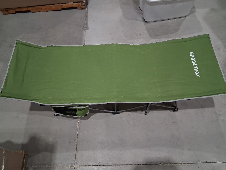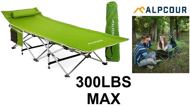 alpcour portable Folding Deluxe Camping cot with carry Bag, Side Pocket & Pillow - 75" x 28" x 18.5" - 300LBS max -‎ Army Green (model:‎ APC-FCCLAG)