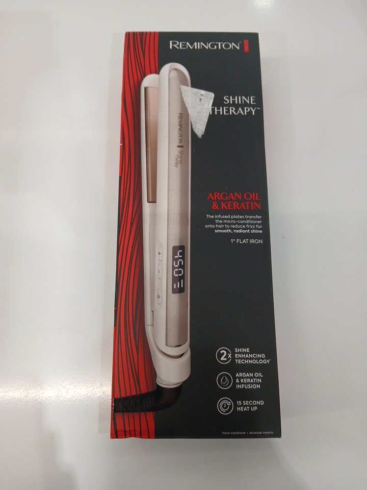 REMINGTON SHINE THERAPY FLAT HAIR STRAIGHTENER IRON INFUSED WITH ARGAN OIL & KERATIN - 1"- WHITE (MODEL: S9511)