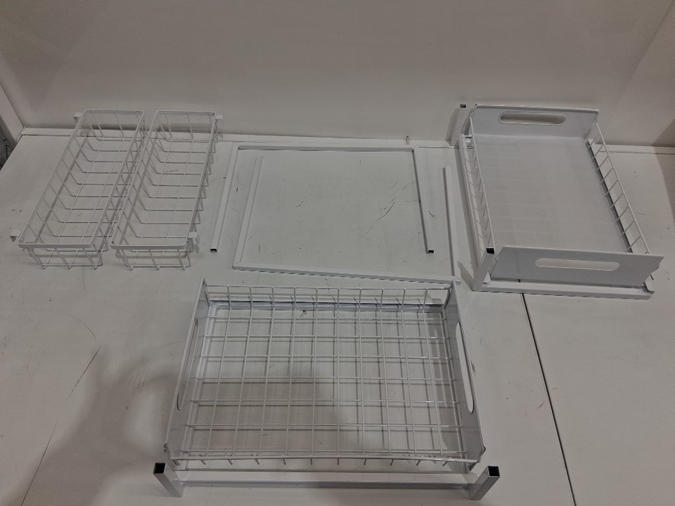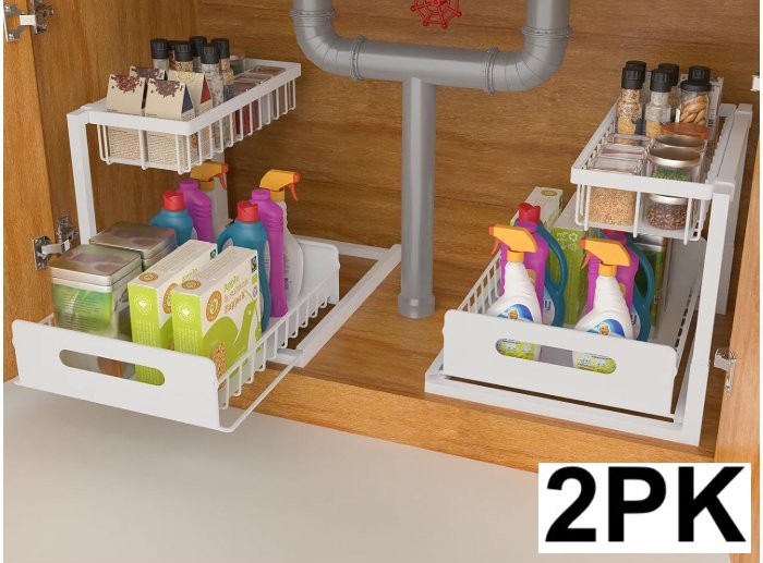 2PK YEPATER UNDER SINK STORAGE CADDY, 2-TIER RUSTPROOF CABINET ORGANIZER WITH SLIDING BASKET, 14.4" x 10.6" x 10.4" - white