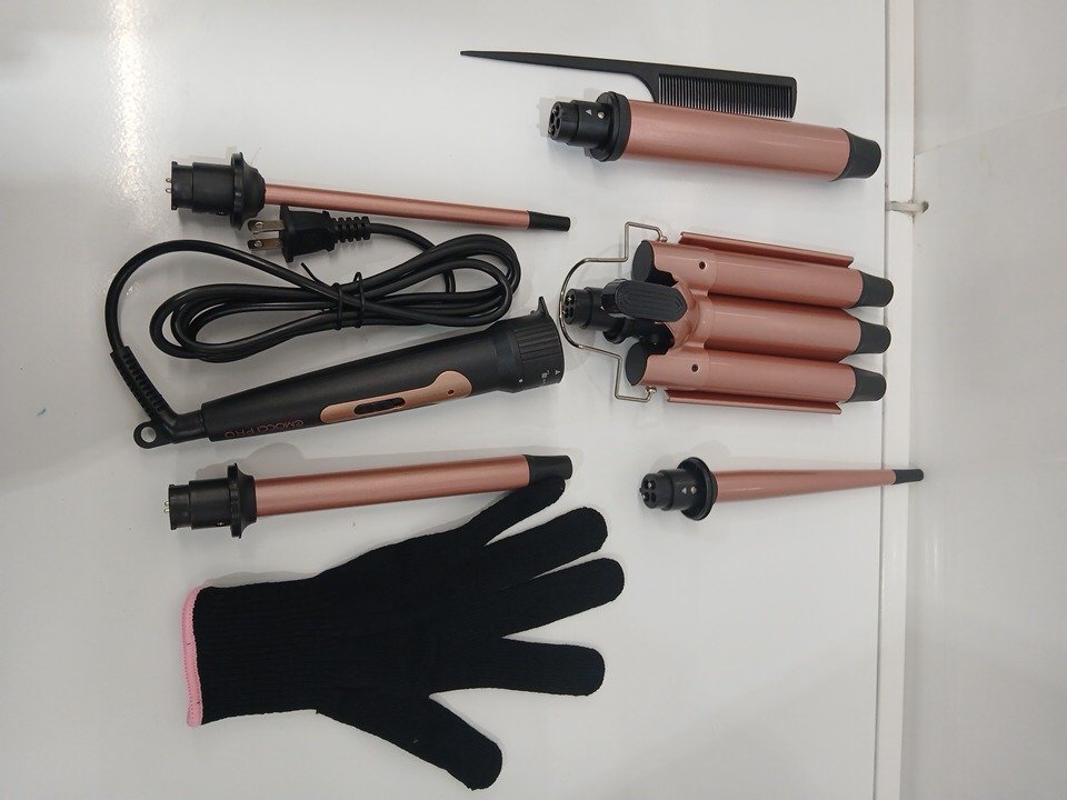FBFL 5-IN-1 CURLING WAND SET WITH INTERCHANGEABLE BARREL, HAIR CLIPS AND HEAT PROTECTIVE GLOVE - PINK (MODEL: KS-C101)
