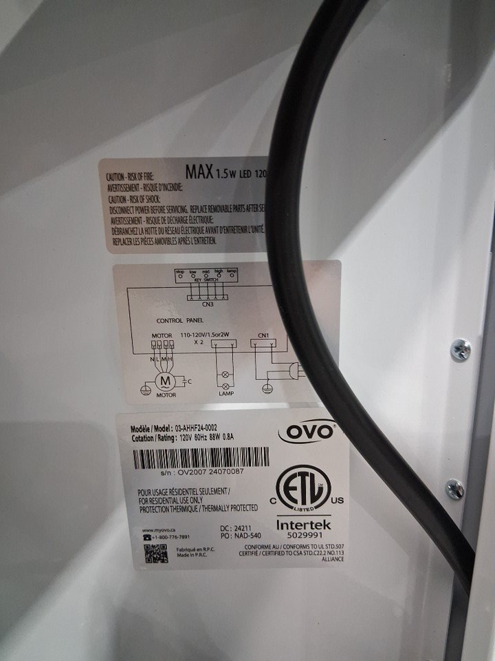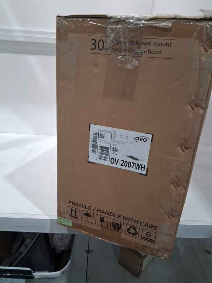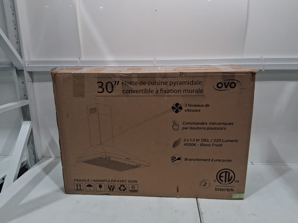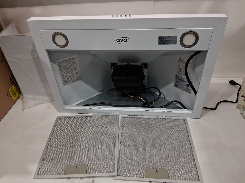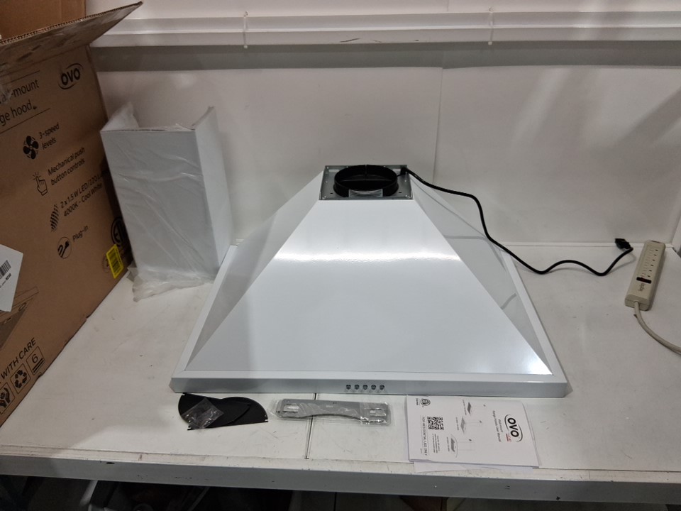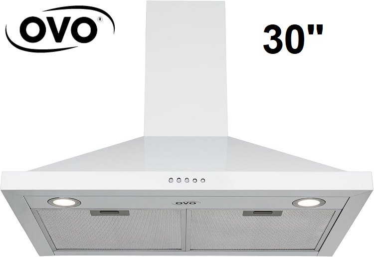 OVO Wall Mount Range Hood Vent with 3 Speed Exhaust Fan, Push Button, Stainless Steel Kitchen Hood - 30" - white - (model:ov-2007wh / 03-ahhf24-0002)