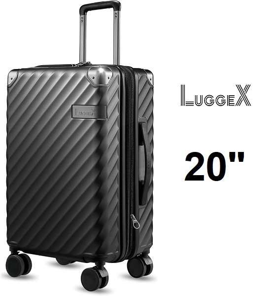 luggex polycarbonate expandable hard shell carry on luggage with tsa lock and wheels - 20" - charcoal grey (model: KV-GBK20)