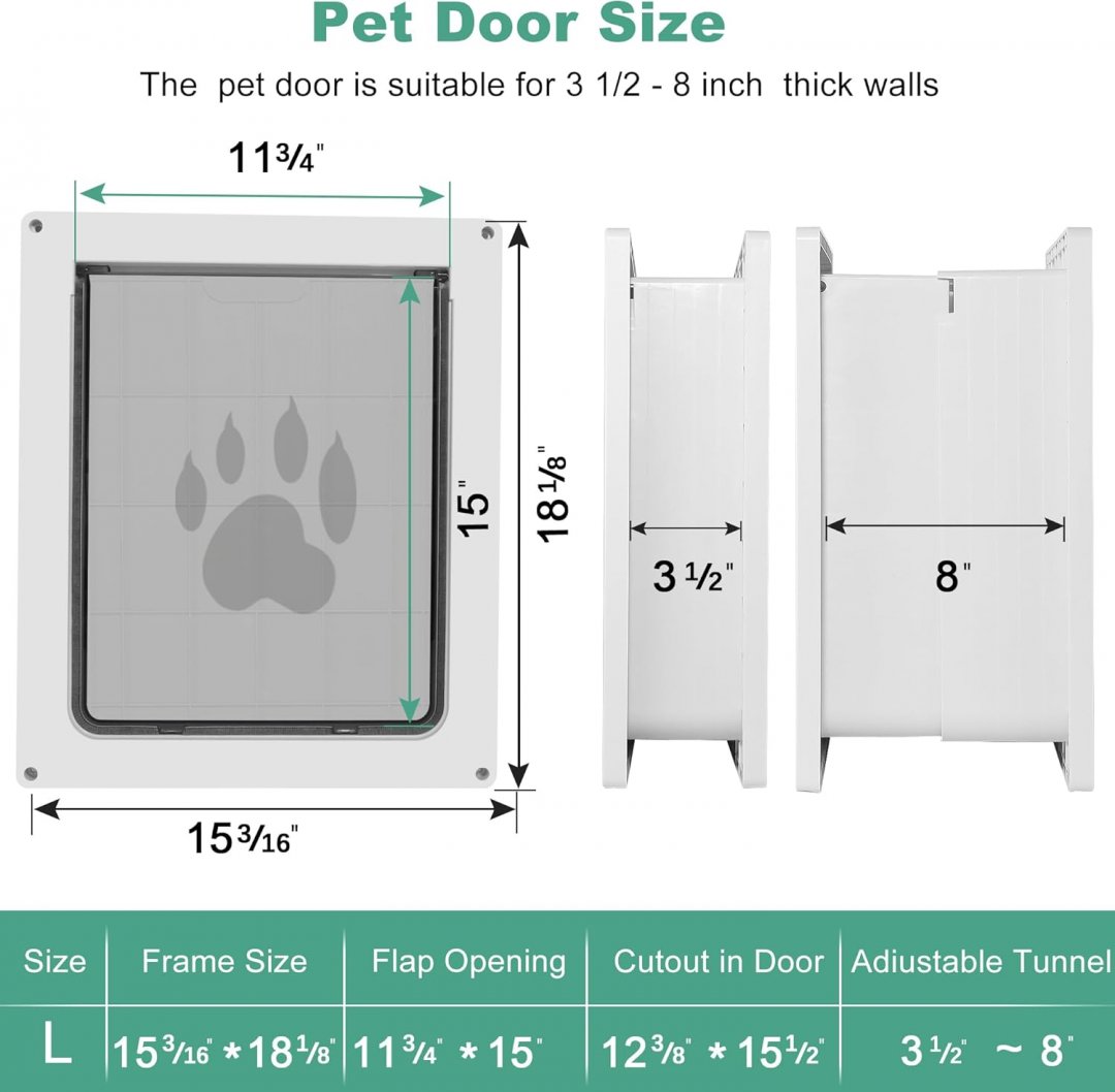 ikuso Weatherproof PET DOOR Magnetic Flap with Insulation AND Adjustable Tunnel - 15" X 18" - WHITE
