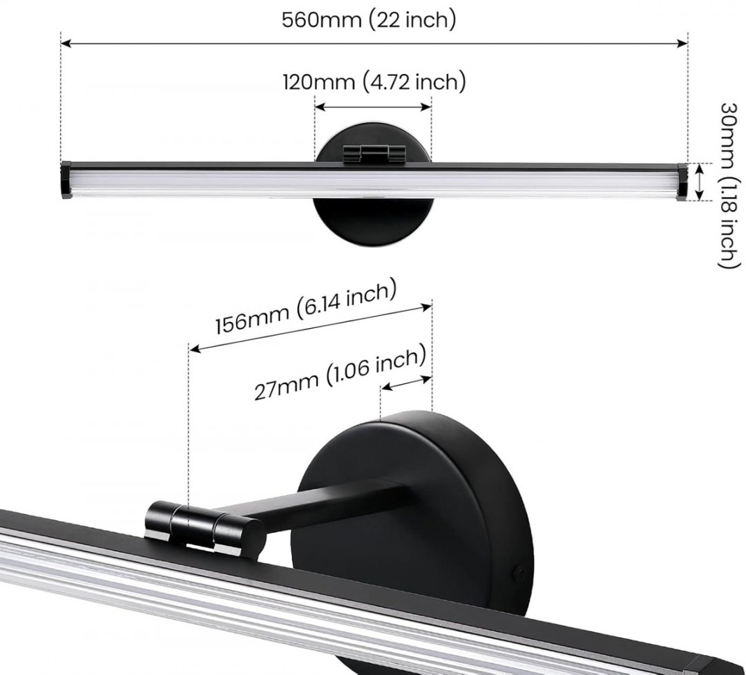 KAISITE Adjustable Dimmable Modern LED Bathroom Vanity Light Fixture - 30" - Black (Model: 8035WL-24BK-US)