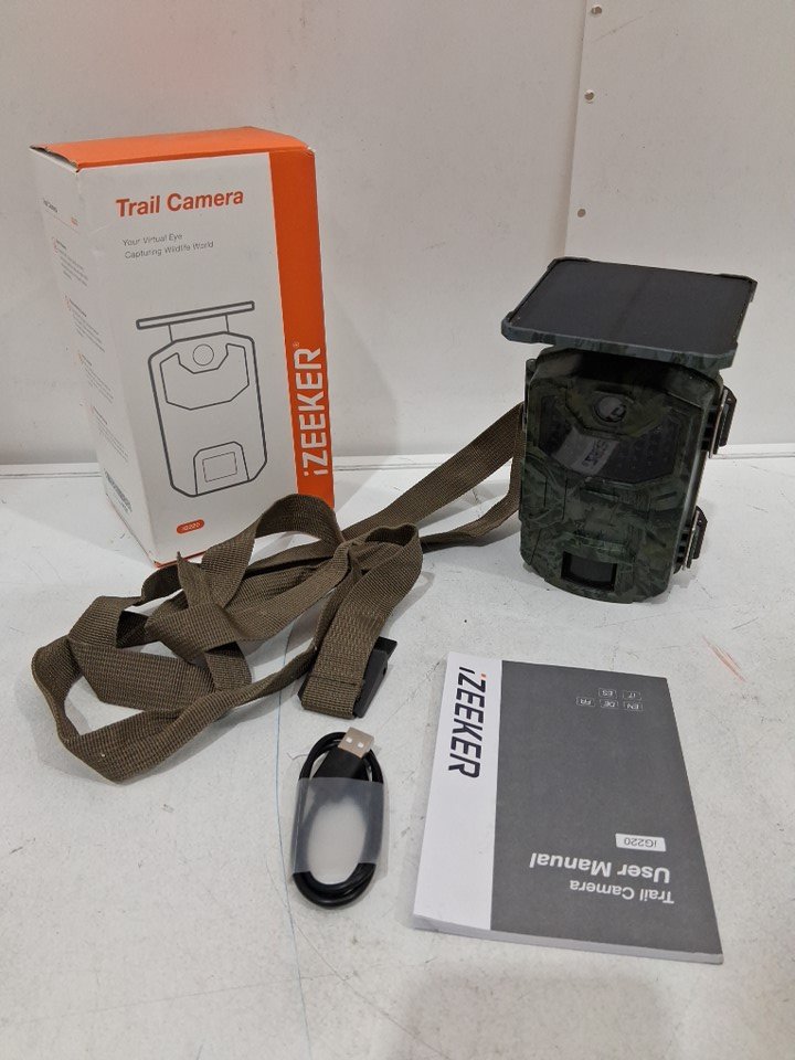 izeeker Solar Trail Camera - 2.7K/1520P hd at 30fps, 36MP, 940nm No Glow Infrared LEDs, Night Vision, Motion Activated, IP66 Waterproof, for Wildlife Monitoring - camouflage (model: ig220)