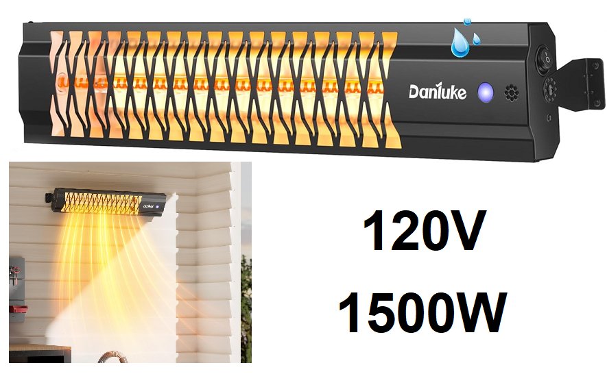 danluke wall mounted outdoor heater - 120v - 1500w - black - (model:t10-gr15b)