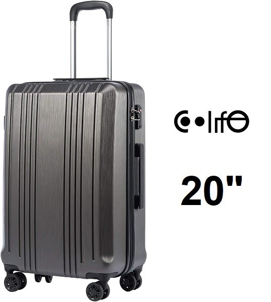 coolife PC+abs hardshell carry on luggage with tsa lock and wheels - 20" - grey (model: CA000060)