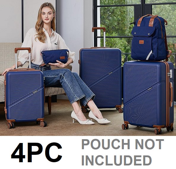 4PC COSBARN Hardshell Luggage Set with 8-Spinner Wheels ANDTSA-Approved Locks - DARK BLUE