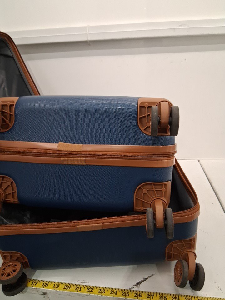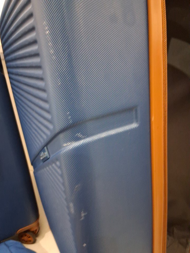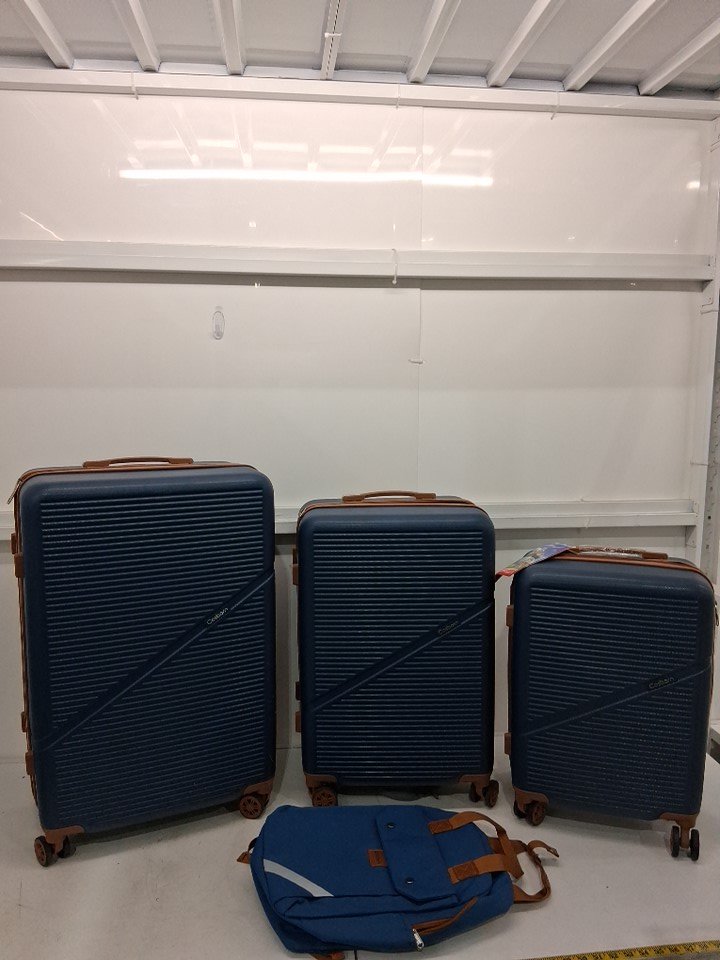 the two biggest luggage are used and both have minor marks on sides and dust on wheels, the carry-on and backpack are new please see pictures
