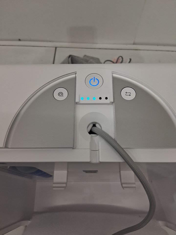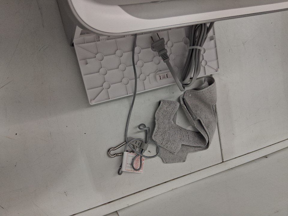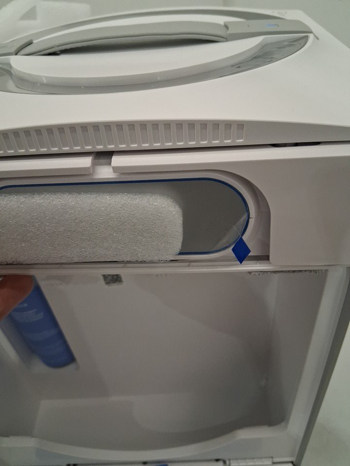 inside door clip has black scuff marks. Vacuum still has seal film and removable tags still on it. Has been tested for power only