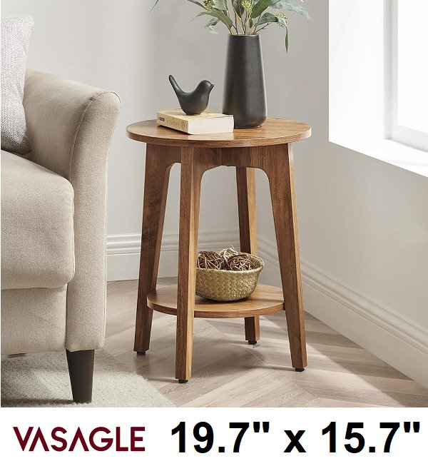 VASAGLE maezo collection Round Side/END Table with Lower Shelf - 19.7" X 15.7" - RUSTIC WALNUT (MODEL: uLET283T41)