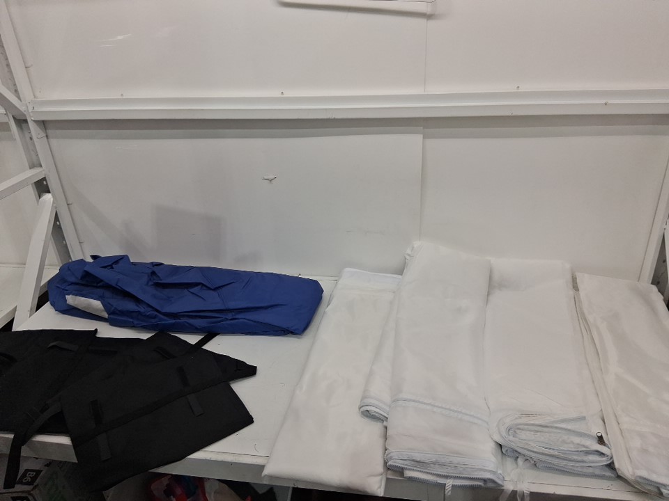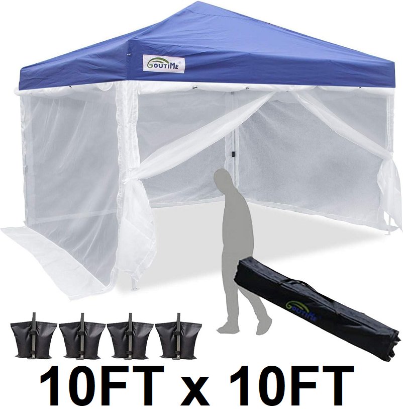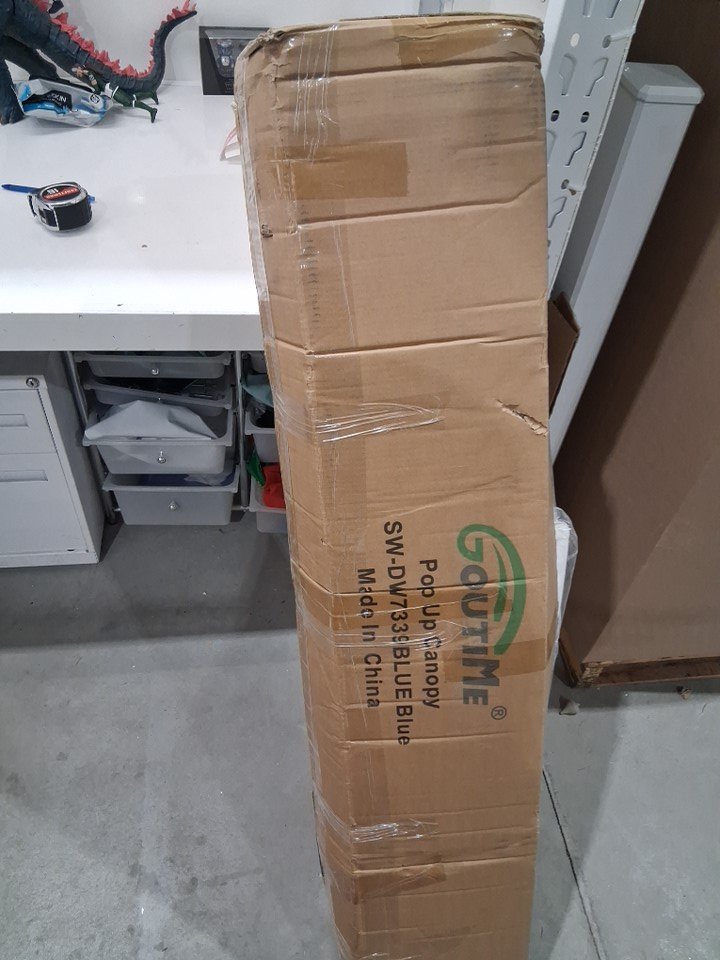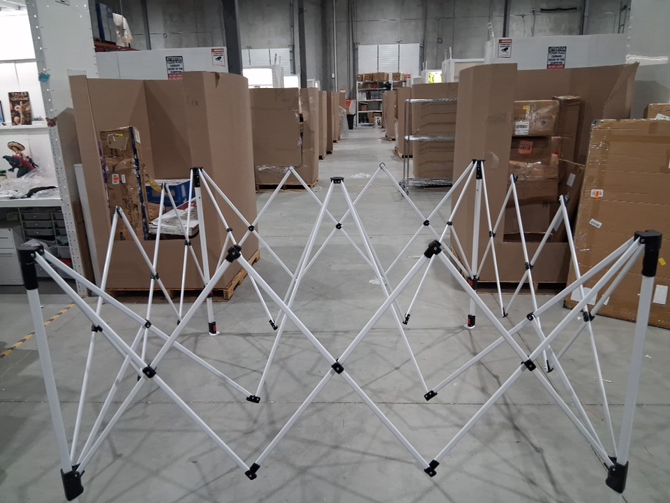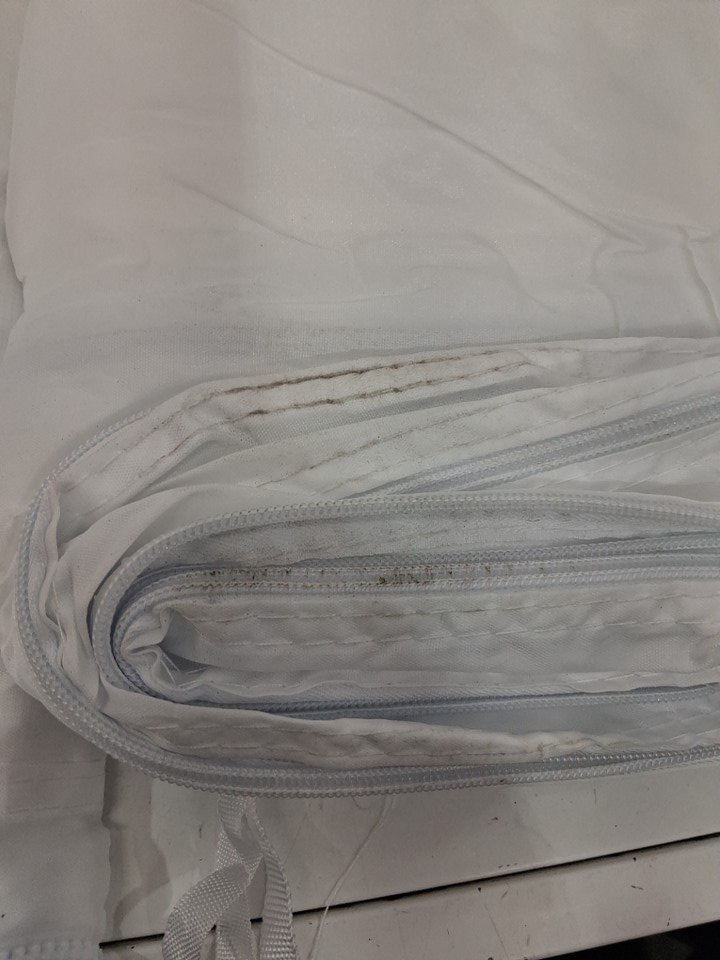 One wall panel has some dirt discoloration. Legs of canopy have visible dirt on it