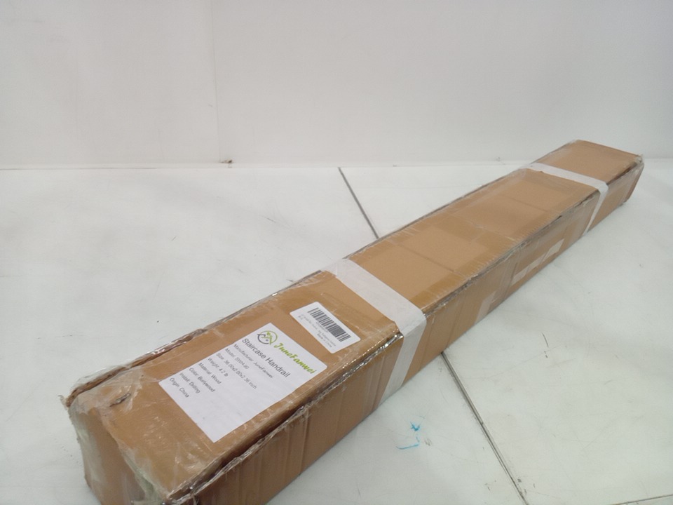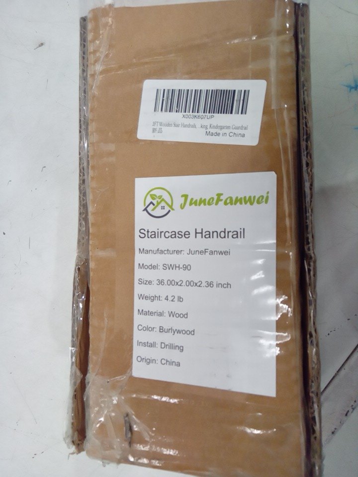 JUNEFANWEI WOODEN STAIR HANDRAIL FOR INDOOR OR OUTDOOR, WALL-MOUNTED SUPPORT - 36" X 2" X 2.36" - BROWN - (MODEL: SWH-90)