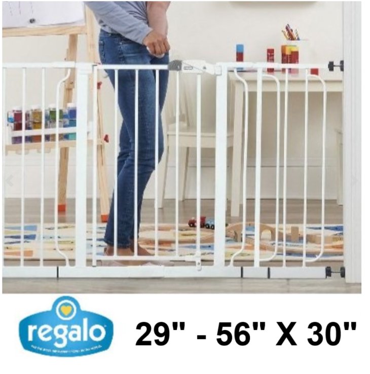 REGALO EASY-OPEN METAL SAFETY GATE - 29" - 56" x 29" - WHITE (MODEL: 1158DS)