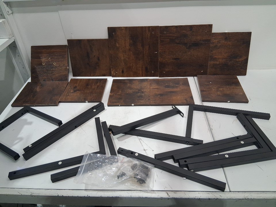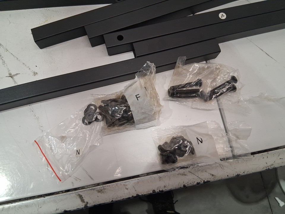 Some of the pieces are currently assembled together and the hardware is installed into them, there are a few scuffs and scrapes from shipping.
