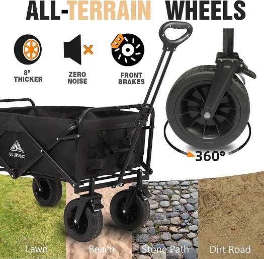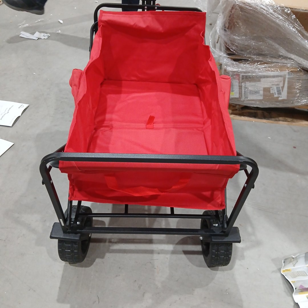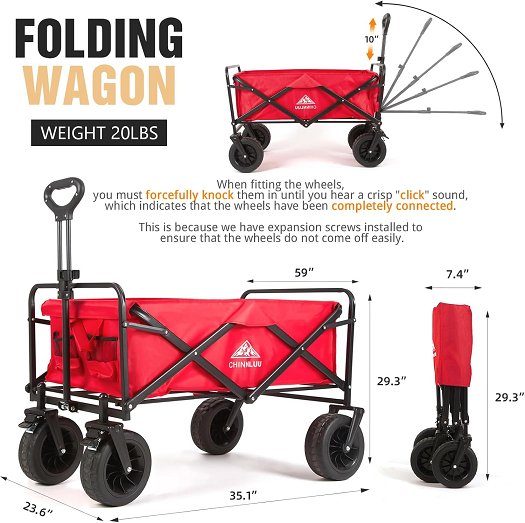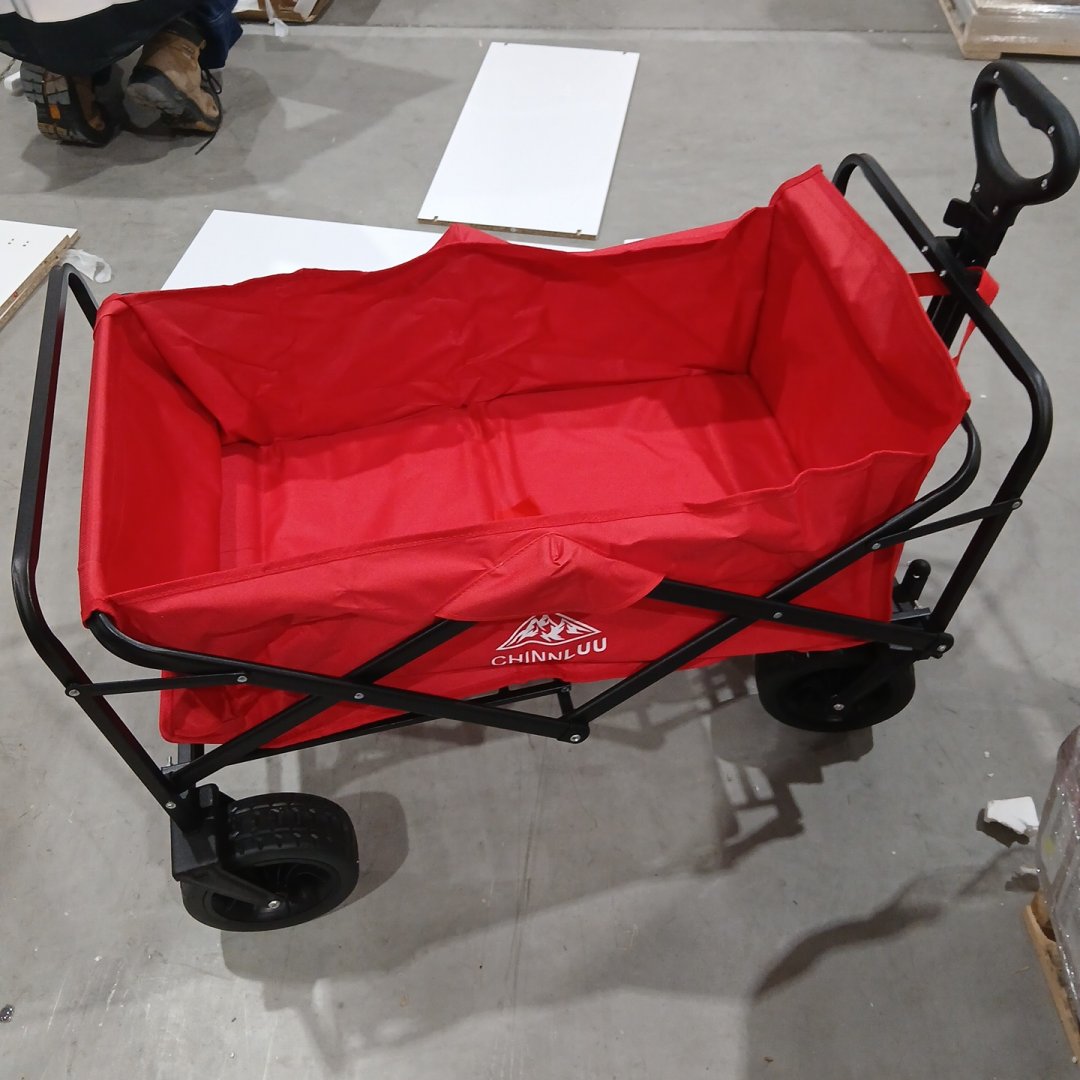 CHINNLUU Foldable Collapsible Utility Wagon Cart, Universal Big Wheels for All Terrain - 23.6" x 35.1" x 29.3" - red