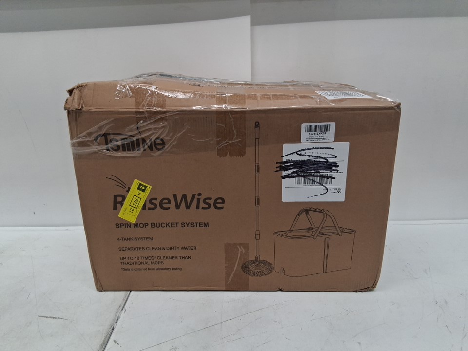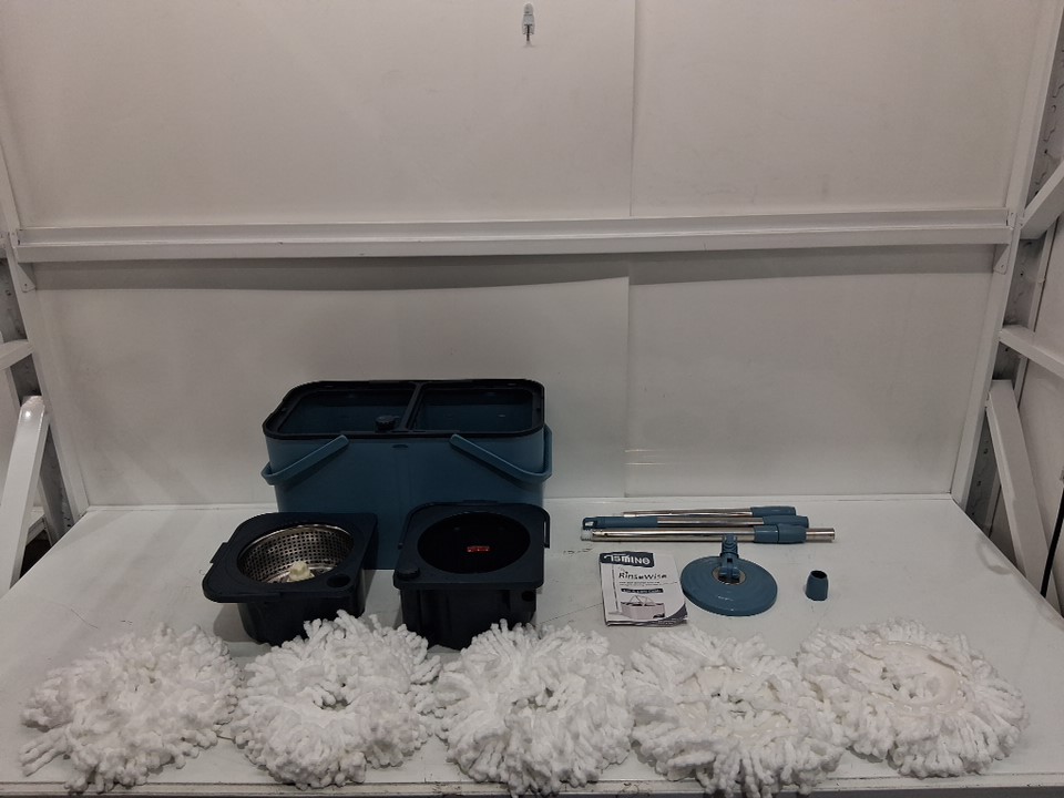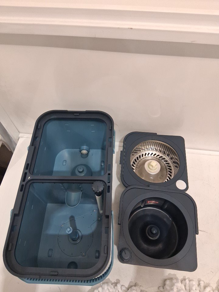 tsmine rinsewise 4 chamber spin mop and bucket with separate clean and dirty water - blue/black (model: ‎RW-QWFL-XZT-BLUE)