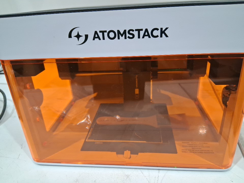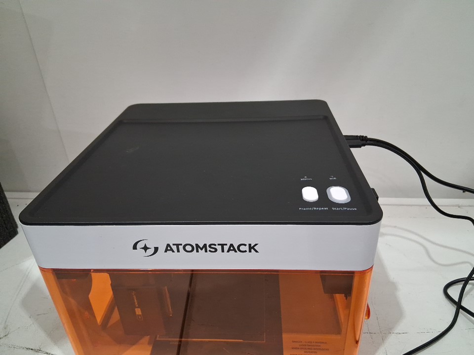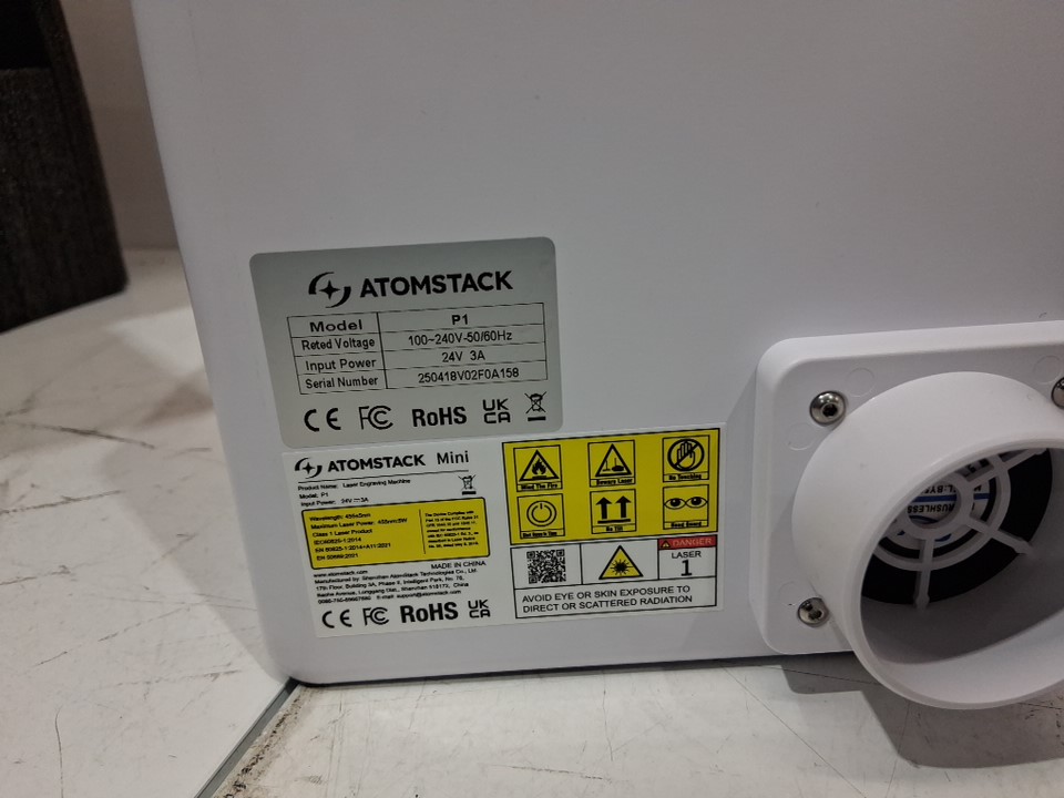 AtomStack Ultra-Compact Portable 5W Diode Laser Engraver WITH EXHAUST FAN - 4.33"x4.33" WORKING AREA, 10000MM/MIN - White/Orange/Black (Model: P1)